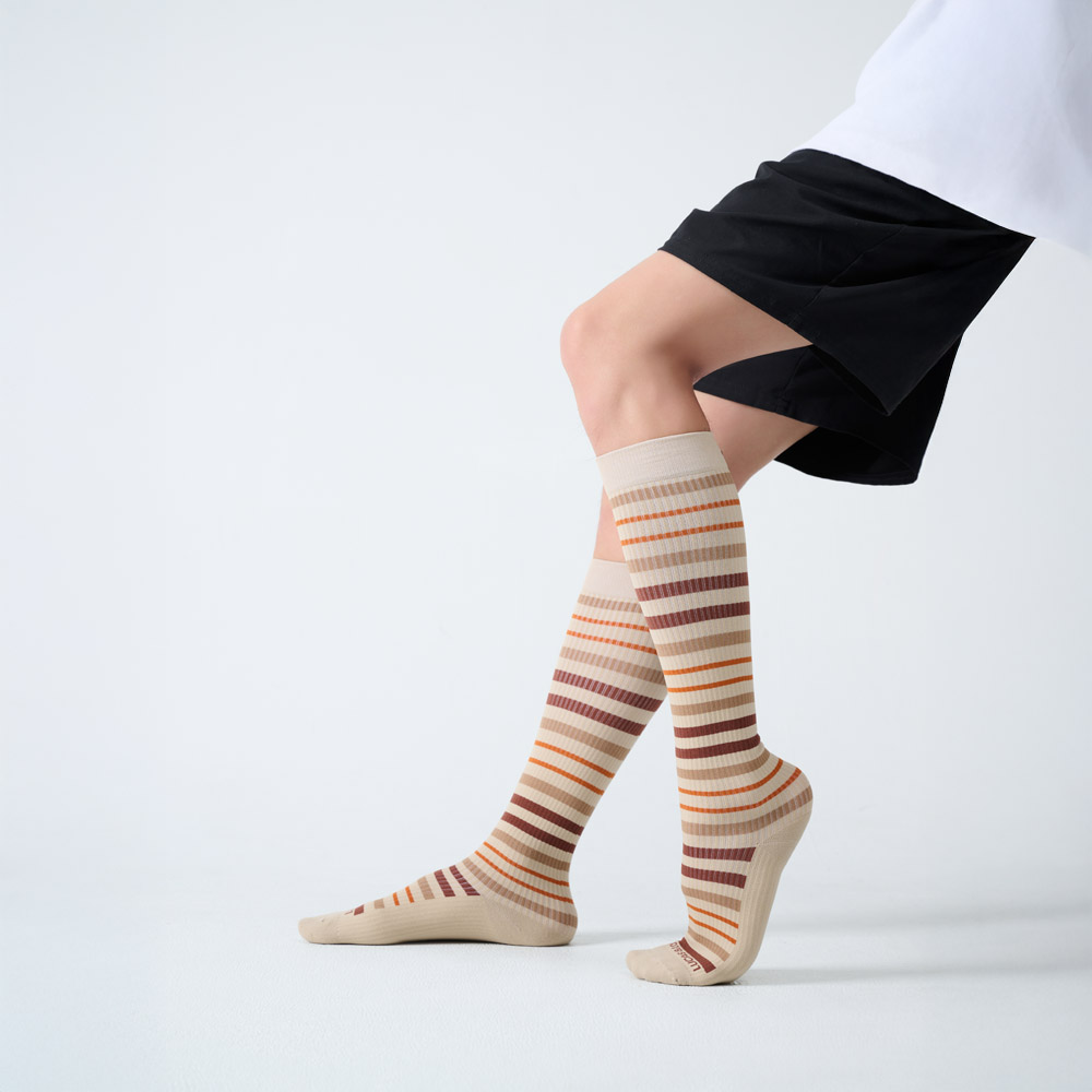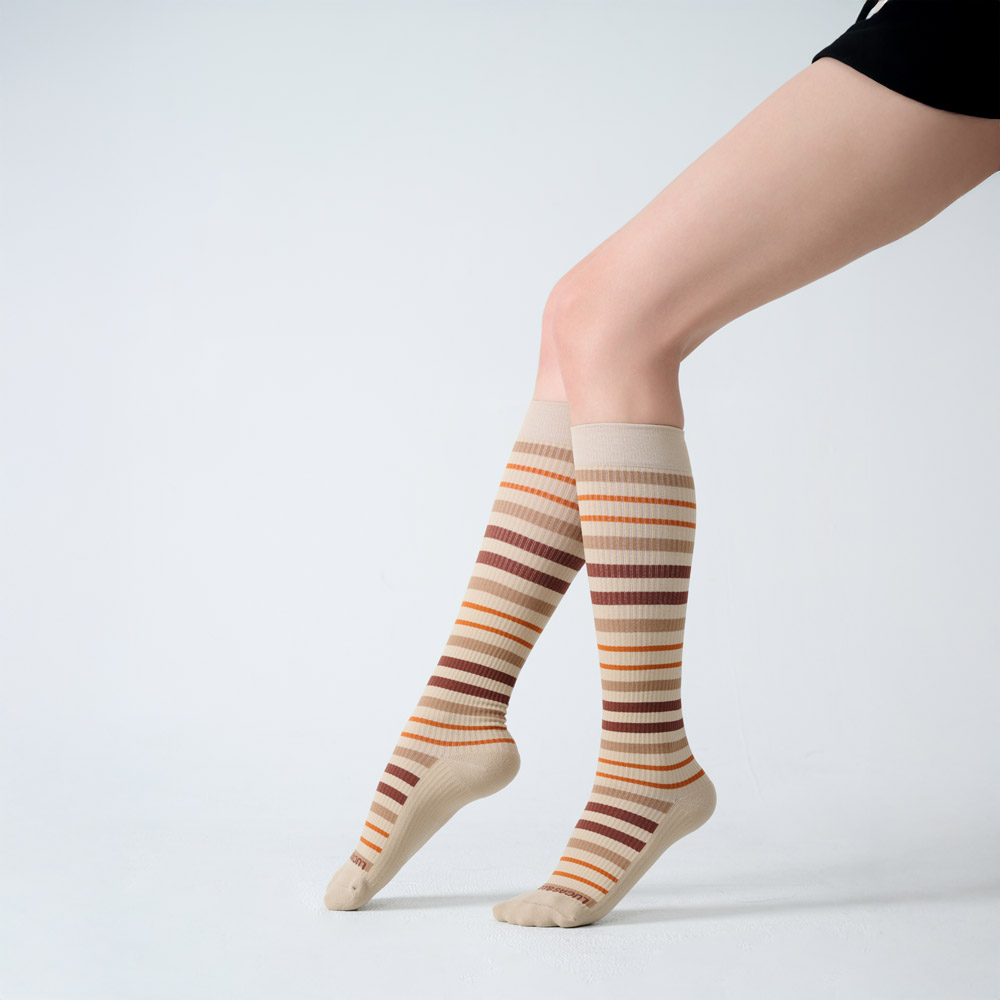 【LUCAS&LOUIS】AI鍺-全效壓力疏導襪/標準款/健身、久站、櫃姐、醫護/100%台灣製造 (條紋棕)